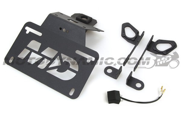This Motodynamic tail tidy is the perfect solution to that bulky fender. Comes with a sleek powder coated finish, LED plate light, and everything you need for an easy installation.